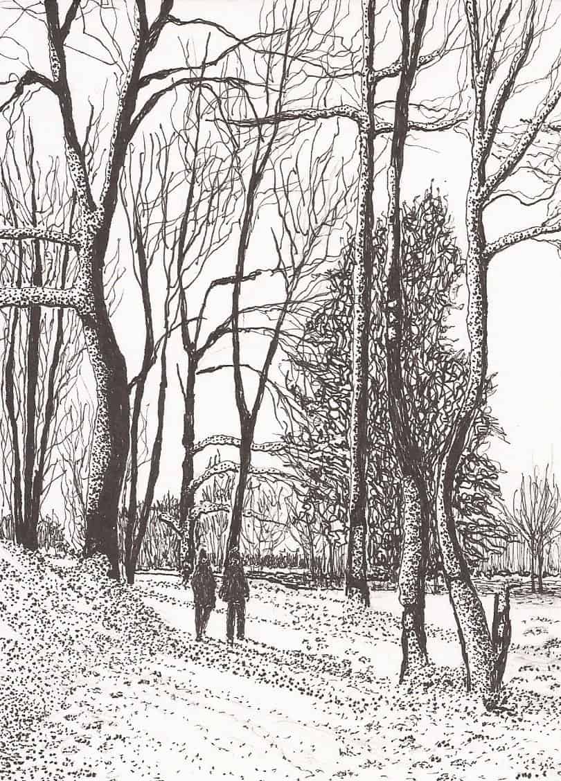 Hatertse vennen met schaatser | 2021 | inkt op papier | 10x15cm