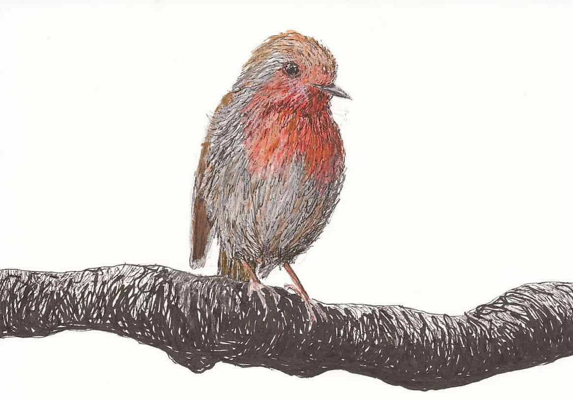 Roodborstje | 2021 | inkt op papier | 10x15cm